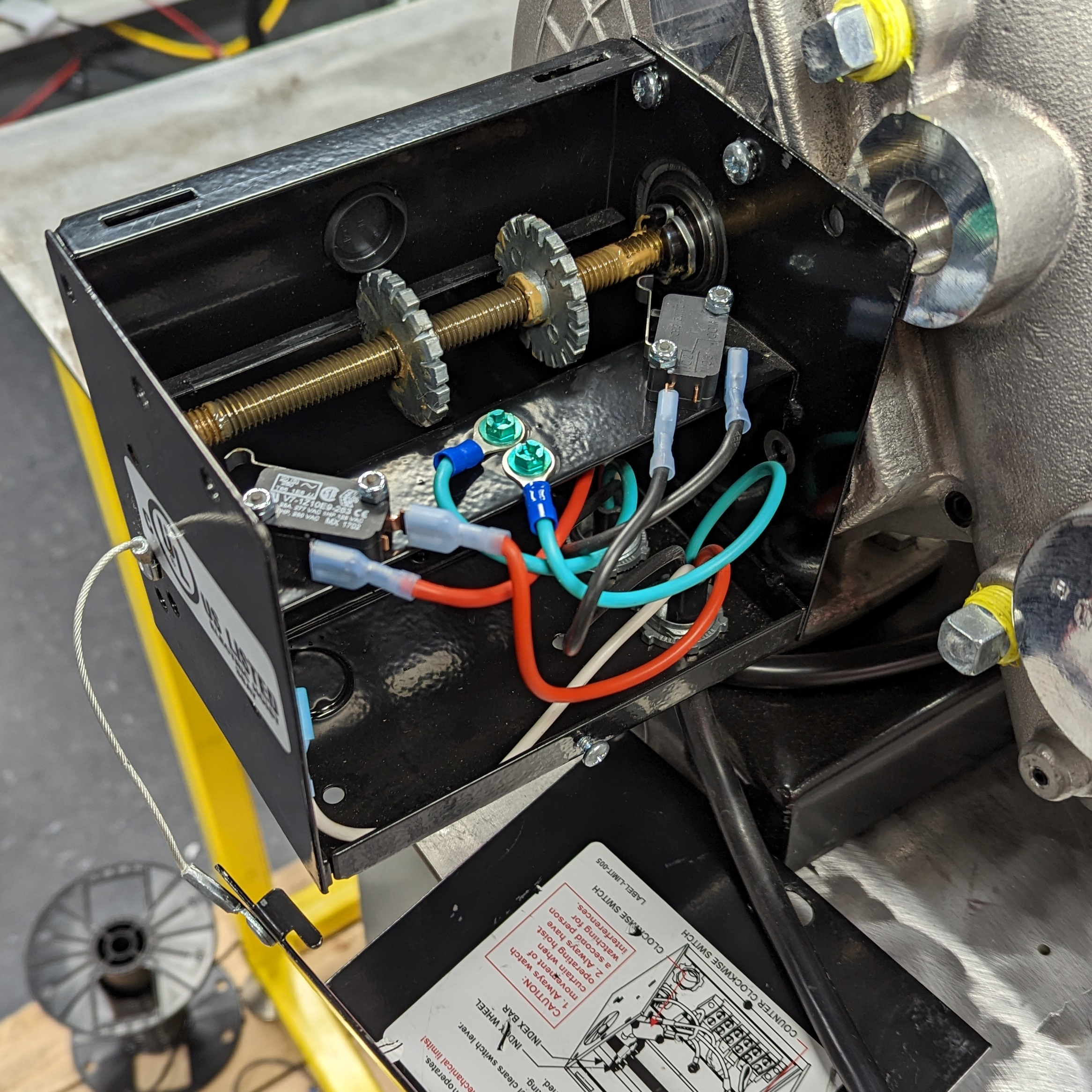 This tester added a second testing bay and nearly fully automated the process. I worked on the core mechanical design and selection of electrical components. The design uses slotted aluminum extrusion for the main frame, a linear rail for a cable tensioner, and a Siemens s7-1200 along with several modules for the automation system. The user sets the voltage through the screen, is then prompted to manually check the limit switches, then the tester automatically runs a hipot test, checks the amperage, lifting time, and keeps tension on the cable during the first two wraps before lifting begins. This doubled throughput by having a two bays that can run at the same time, as well as nearly completely freed up the user for other tasks as previously the user had to stand at the bay and hold a switch.